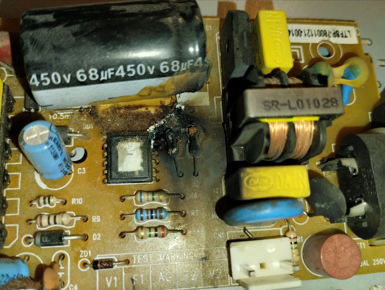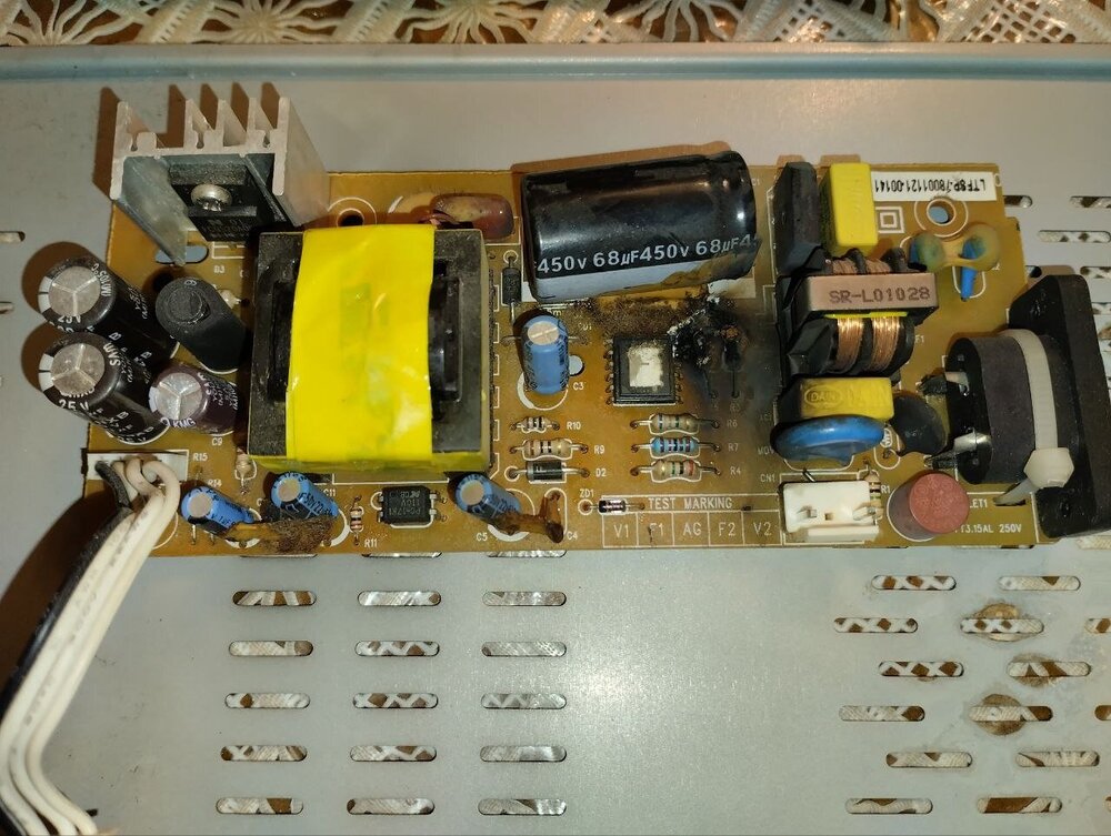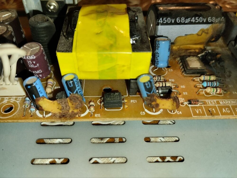 Ресивер Openbox S6 перестал включаться. Блок питания Openbox S6 мягко говоря оказался в ужасающем состоянии. Хорошо, что не случился пожар. Наверное, придётся нести блок питания к мастеру, хотя сам умею перепаивать конденсаторы. Здесь меня интересует главный вопрос. Что может быть причиной попадания в такое состояние блока питания? Ведь, это случилось не за один день? Как по конденсаторам визуально можно понять, какой из конденсаторов потёк, и почему он не потёк вниз, а на соседний конденсатор или резистор? Почему сгорели два резистора на 2 и 6,8 Мегаом?