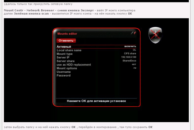 mirik1980 Опубликовано 1 сентября, 2012 Опубликовано 1 сентября, 2012 а где ты ищешь папки компа?если в нетворк браузере(второй скрин arion75),то это не там. будет приблизительно в media/net/папка которую прописал во второй строке первого скрина.в ней будут папки диска компа. применительно к этому скрину будет media/net/OL.все это ищется в медиацентре,медиаплеере,ДВДплеере У меня не монтируется диск вообще, соответственно Энигма не видит папку с компьютера, задача стоит в примонтировании. Marik